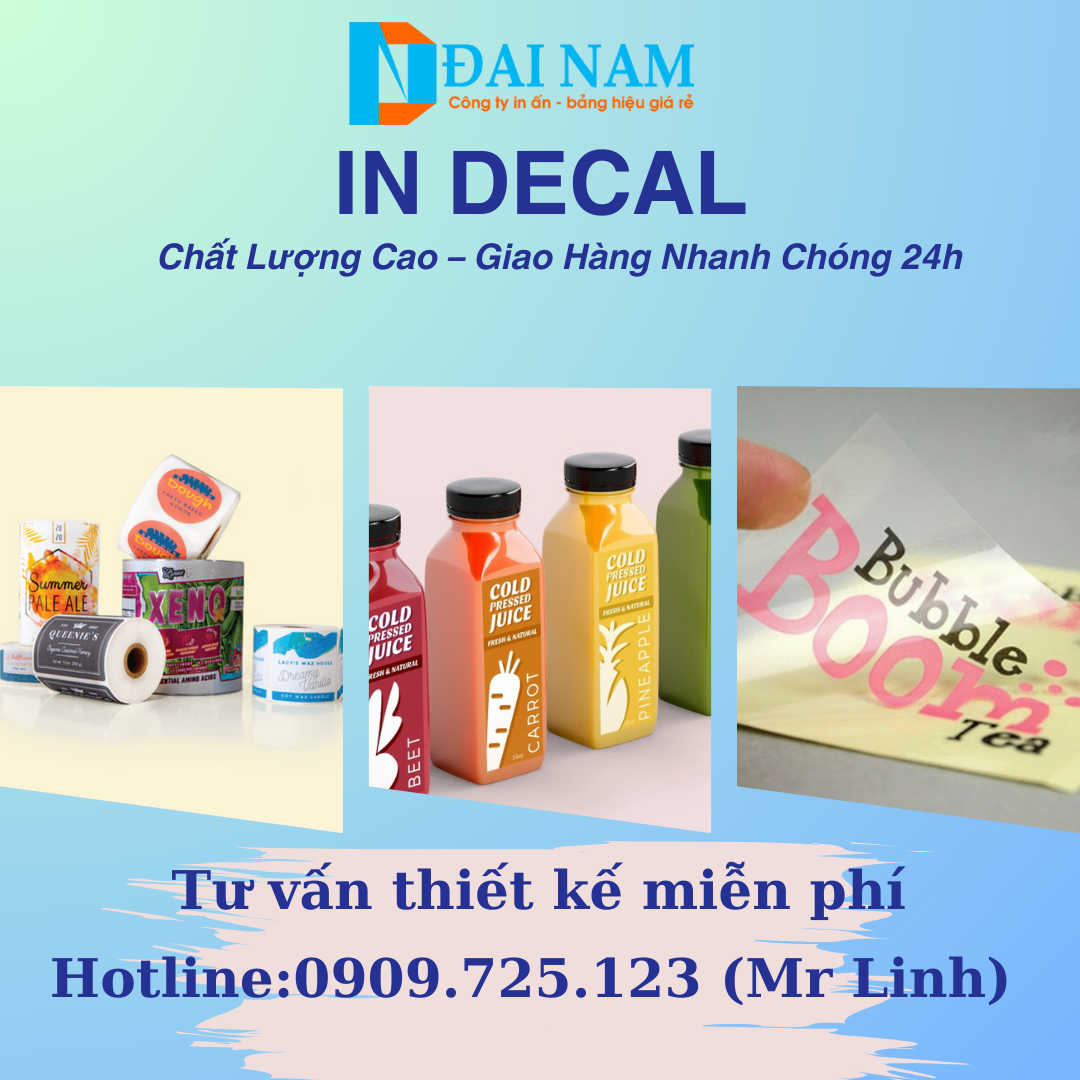 Lưu ý: Giá có thể thay đổi tùy theo số lượng, chất liệu (decal PP, decal giấy, decal trong...) và yêu cầu gia công.